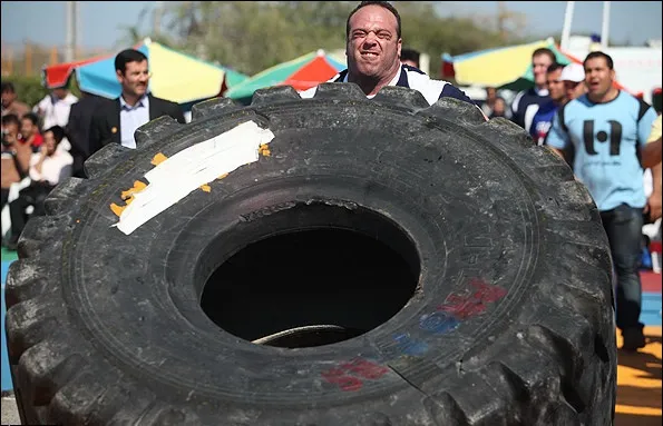 مسابقات قويترين مردان جهان با حضور 12 ورزشکار خارجي از 10 کشور جهان و 3 ورزشکار از کشورمان به مدت 2 روز در بوستان زيتون جزيره قشم برگزار شد که در 4 آيتم برگزار شده امروز در بخش حمل الوار 400کيلوگرمي به مسافت 30متر و بلند کردن گوهاي سنگي 100و200 کيلوگرمي روح الله داداشي از کشورمان در جايگاه نخست ايستاد و در بخش غلتاندن لاستيک 440کيلوگرمي نيز مسلم دارابي به عنوان قهرماني دست يافت. مقام نخست بخش پلکان قدرت نيز ازآن کريستوف رادزي کوزکي از هلند شد.