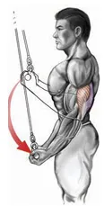 این حرکت در برنامه شیب مثبت و شیب منفی هم وجود داشت. بهصورت برعکس روی میز بخوابید. دستگیره طنابی را به انتهای کابل متصل کنید. کمی آرنجها را جلوتر از بدن برده و در هنگام کشیدن طناب در همان موقعیت حفظ کنید. (میتوانید از دستگیره فلزی هم استفاده کنید ولی در اینصورت ممکن است دامنه حرکت محدود شود.)